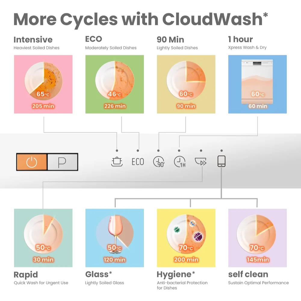 - 【98℃ Steam Adding+】This is a function that releases steam of up to 98℃ while washing dishes using programs such as ECO, 1 Hour, Rapid, Glass or Baby Care. This helps to ensure that your dishes are thoroughly cleaned and hygienic.